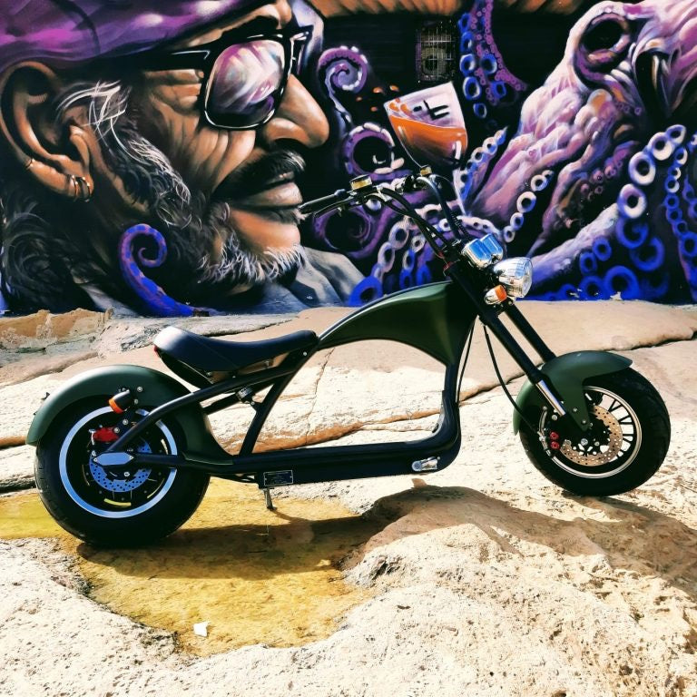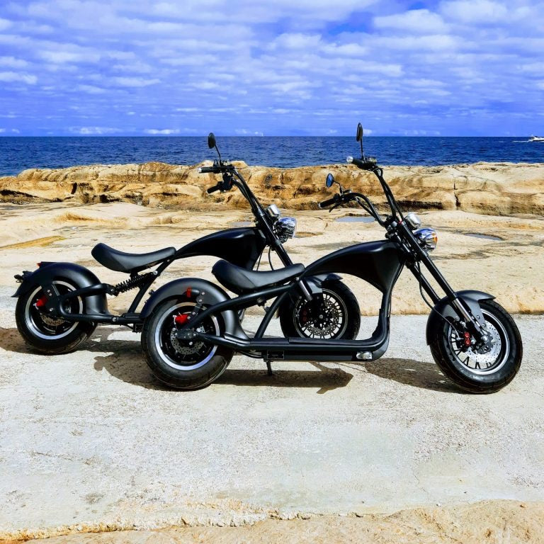 Mit ihrem markanten Design sind E-Chopper echte Hingucker auf der Straße. Ihre kraftvolle Silhouette und die entspannte Sitzposition machen sie zu einem Mode-Statement, das bewundert wird. Zeigen Sie Ihren einzigartigen Stil und heben Sie sich von der Masse ab